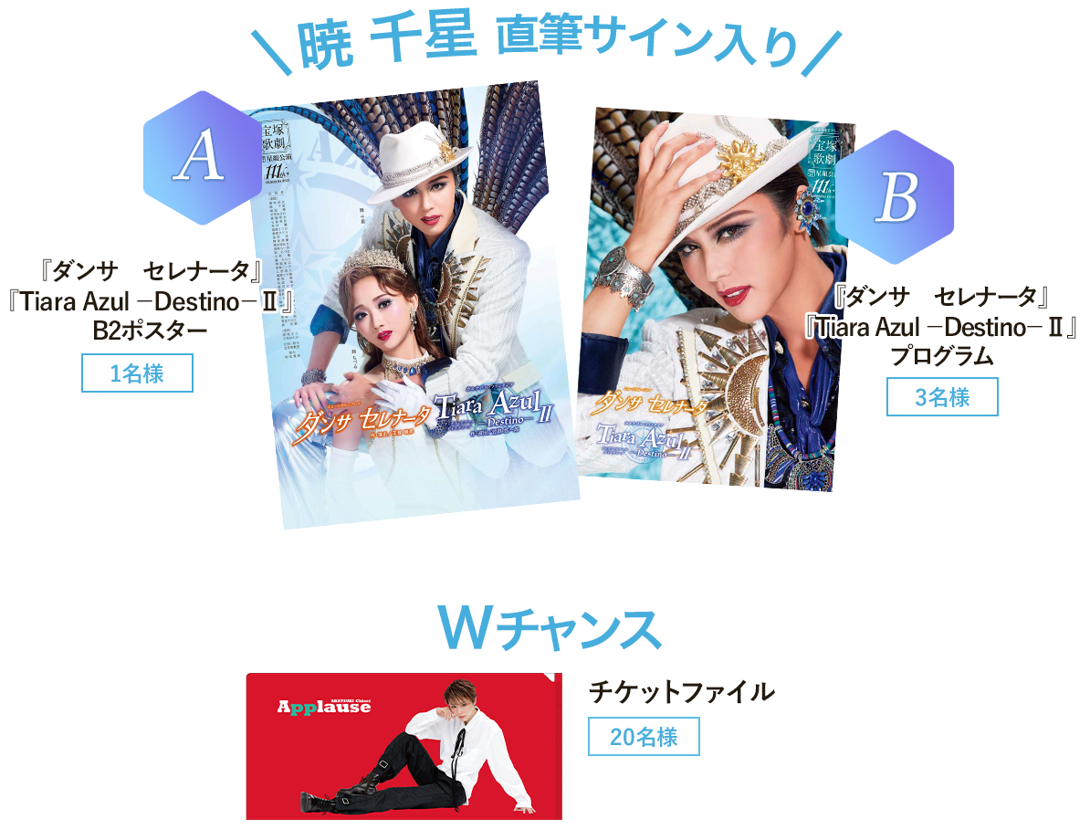 1月放送の「暁千星 お披露目特集」で 舞台作品放送後に発表するキーワードを3つ集めてご応募いただくと 抽選で暁千星のサイン入りポスターやプログラムをプレゼント