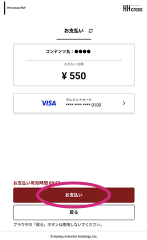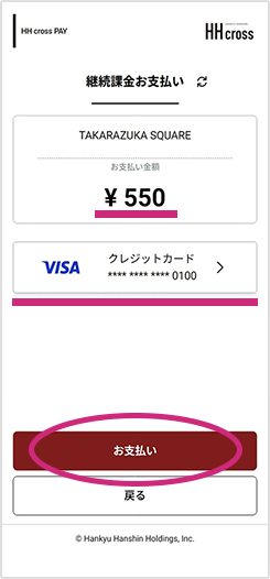 決済(HH cross PAY) に自動で進むので、金額をご確認のうえお支払いを完了する