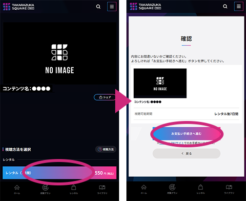 視聴したいコンテンツのページで「レンタル」を選択し、支払い手続きに進む
