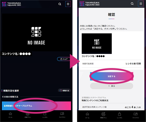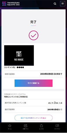ご自身のステージと選択可能本数については、 TAKARAZUKA SQUARE【タカスク】ログイン後、「マイページ」>「ご契約情報」をご確認ください。視聴方法