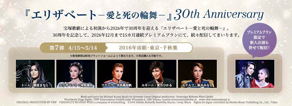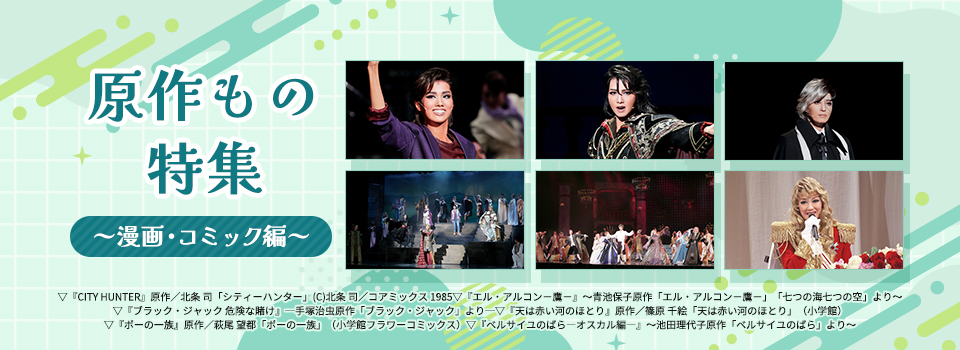 ▽『侍タイムスリッパー』原作/安田 淳一「侍タイムスリッパー」 ▽『Goethe!』Music by Martin Lingnau Lyrics by Frank Ramond Book by Gil Mehmert Orchestration by Sebastian de Domenico In association with Stage Entertainment Based on the feature film “Goethe!” by Philipp Stölzl, produced and licensed by Senator Film / Warner Bros. ▽『DEAN』DEAN © John Howlett and Robert Campbell Copyright agent: Alan Brodie Representation Ltd www.alanbrodie.com ▽『ボー・ブランメル~美しすぎた男~』作曲/フランク・ワイルドホーン ▽『愛の不時着』原作tvNドラマ「愛の不時着」パク・ジウン執筆 ⓒSTUDIO DRAGON by CJ ENM, ALL RIGHTS RESERVED. Writer : Park Ji eun ▽『アレクサンダー』原作/赤石 路代「アレクサンダー大王 -天上の王国-」(小学館「flowersフラワーコミックスα」刊) ▽『PRINCE OF LEGEND』原作・著作・構想/HI-AX ▽『An American in Paris』Music and Lyrics by George Gershwin and Ira Gershwin Book by Craig Lucas Originally produced on Broadway by Stuart Oken Van Kaplan Roy Furman By special arrangement with Elephant Eye Theatrical & Pittsburgh CLO and Théâtre du Châtelet The worldwide copyright in the music of George and Ira Gershwin for this presentation are licensed by the Gershwin Family An American in Paris is presented by arrangement with Concord Theatricals on behalf of TAMS WITMARK LLC and BROADWAY ASIA www.concordtheatricals.com and www.broadwayasia.com ▽『悪魔城ドラキュラ』原作/株式会社コナミデジタルエンタテインメント 「悪魔城ドラキュラ」シリーズ ©Konami Digital Entertainment ▽『ZORRO THE MUSICAL』“Zorro - The Musical” is presented in association with Zorro USA LLC Original Executive Producer - John Gertz ▽『記憶にございません!』原作/映画「記憶にございません!」 ©2019フジテレビ 東宝 映画脚本・監督/三谷 幸喜 ▽『阿修羅城の瞳』原作/劇団☆新感線「阿修羅城の瞳」(作・中島 かずき) 原作演出/いのうえひでのり ▽『ANTHEM-アンセム-』総合演出・ステージ制作/大田 高彰(インターグルーヴプロダクションズ) ▽『BONNIE & CLYDE』Book by IVAN MENCHELL Lyrics by DON BLACK Music by FRANK WILDHORN BONNIE & CLYDE is presented through special arrangement with Music Theatre International (MTI). All authorized performance materials are also supplied by MTI. 423 West 55th Street, 2nd Floor, New York, New York 10019 USA www.mtishows.com ▽『Thunderbolt Fantasy 東離劍遊紀』~虚淵玄 原案・脚本・総監修「Thunderbolt Fantasy 東離劍遊紀」より~ (c)2016-2018 Thunderbolt Fantasy Project ▽『愛と革命の詩-アンドレア・シェニエ-』~オペラ「アンドレア・シェニエ」より~ ▽『天は赤い河のほとり』原作/篠原 千絵「天は赤い河のほとり」(小学館) ▽『DEATH TAKES A HOLIDAY』Book by Thomas Meehan and Peter Stone / Music and Lyrics by Maury Yeston Based on the dramatic play by Alberto Casella and rewritten for the American stage by Walter Ferris and originally produced by the Messrs. Shubert ▽『ディミトリ~曙光に散る、紫の花~』─並木陽作「斜陽の国のルスダン」より─ ▽『RRR × TAKA"R"AZUKA ~√Bheem~』Based on SS Rajamouli’s ‘RRR’. ▽『ブラック・ジャック 危険な賭け』─手塚治虫原作「ブラック・ジャック」より─ ▽『ME AND MY GIRL』Book and Lyrics by L.ARTHUR ROSE and DOUGLAS FURBER Music by NOEL GAY Book revised by STEPHEN FRY Contributions to revisions by MIKE OCKRENT ▽『パルムの僧院 —美しき愛の囚人—』~スタンダール作『パルムの僧院』より~ ▽『Xcalibur エクスカリバー』Book by Ivan Menchell Music by Frank Wildhorn Lyrics by Robin Lerner Original Music Arrangement and Orchestration by Koen Schoots Original Production & Worldwide Stage Rights and Management by EMK MUSICAL COMPANY KOREA ▽『応天の門』原作/灰原 薬「応天の門」(新潮社バンチコミックス刊) ▽『群盗-Die Rauber-』-フリードリッヒ・フォン・シラー作「群盗」より- ▽『1789 -バスティーユの恋人たち-』Le Spectacle Musical ≪1789 - Les Amants de la Bastille≫ Produced by NTCA PRODUCTIONS, Dove Attia and Albert Cohen International Licensing & Booking, G.L.O, Guillaume Lagorce ▽『鴛鴦歌合戦』~原作 映画「鴛鴦歌合戦」(c)日活株式会社 監督/マキノ正博 脚本/江戸川浩二~ ▽『Le Rouge et le Noir ~赤と黒~』D'après l'œuvre de Stendhal «Le Rouge et le Noir, l'Opéra Rock» Produced by Sam Smadja - SB Productions International Licensing & Booking, G.L.O, Guillaume Lagorce ▽『銀ちゃんの恋』-つかこうへい作「蒲田行進曲」より- ▽『カジノ・ロワイヤル ~我が名はボンド~』原作/イアン・フレミング「007/カジノ・ロワイヤル」(白石朗訳、創元推理文庫刊) ▽『FLY WITH ME』Produced by TEAM GENESIS from LDH JAPAN ▽『蒼穹の昴』~浅田次郎作「蒼穹の昴」(講談社文庫)より~ ▽『HiGH&LOW -THE PREQUEL-』原作・著作・構想/HI-AX ▽『夢介千両みやげ』原作/山手 樹一郎「夢介千両みやげ」 ▽『王家に捧ぐ歌』-オペラ「アイーダ」より- ▽『今夜、ロマンス劇場で』原作/映画「今夜、ロマンス劇場で」(c)2018 フジテレビジョン ホリプロ 電通 KDDI ▽『川霧の橋』-山本周五郎作「柳橋物語」「ひとでなし」より- ▽『柳生忍法帖』原作/山田 風太郎「柳生忍法帖」(KADOKAWA 角川文庫刊) ▽『CITY HUNTER』(C)北条 司/コアミックス 1985 ▽『ダル・レークの恋』作/菊田 一夫 ▽『ロミオとジュリエット』Romeo & Juliette Le spectacle musical de GERARD PRESGURVIC D'apres l' œuvre de WILLIAM SHAKESPEARE ▽『NICE WORK IF YOU CAN GE
