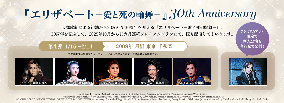 ▽『Goethe!』Music by Martin Lingnau Lyrics by Frank Ramond Book by Gil Mehmert Orchestration by Sebastian de Domenico In association with Stage Entertainment Based on the feature film “Goethe!” by Philipp Stölzl, produced and licensed by Senator Film / Warner Bros. ▽『DEAN』DEAN © John Howlett and Robert Campbell Copyright agent: Alan Brodie Representation Ltd www.alanbrodie.com ▽『ボー・ブランメル~美しすぎた男~』作曲/フランク・ワイルドホーン ▽『愛の不時着』原作tvNドラマ「愛の不時着」パク・ジウン執筆 ⓒSTUDIO DRAGON by CJ ENM, ALL RIGHTS RESERVED. Writer : Park Ji eun ▽『アレクサンダー』原作/赤石 路代「アレクサンダー大王 -天上の王国-」(小学館「flowersフラワーコミックスα」刊) ▽『PRINCE OF LEGEND』原作・著作・構想/HI-AX ▽『An American in Paris』Music and Lyrics by George Gershwin and Ira Gershwin Book by Craig Lucas Originally produced on Broadway by Stuart Oken Van Kaplan Roy Furman By special arrangement with Elephant Eye Theatrical & Pittsburgh CLO and Théâtre du Châtelet The worldwide copyright in the music of George and Ira Gershwin for this presentation are licensed by the Gershwin Family An American in Paris is presented by arrangement with Concord Theatricals on behalf of TAMS WITMARK LLC and BROADWAY ASIA www.concordtheatricals.com and www.broadwayasia.com ▽『悪魔城ドラキュラ』原作/株式会社コナミデジタルエンタテインメント 「悪魔城ドラキュラ」シリーズ ▽『ZORRO THE MUSICAL』“Zorro - The Musical” is presented in association with Zorro USA LLC Original Executive Producer - John Gertz ▽『記憶にございません!』原作/映画「記憶にございません!」 ©2019フジテレビ 東宝 映画脚本・監督/三谷 幸喜 ▽『阿修羅城の瞳』原作/劇団☆新感線「阿修羅城の瞳」(作・中島 かずき) 原作演出/いのうえひでのり ▽『ANTHEM-アンセム-』総合演出・ステージ制作/大田 高彰(インターグルーヴプロダクションズ) ▽『BONNIE & CLYDE』Book by IVAN MENCHELL Lyrics by DON BLACK Music by FRANK WILDHORN BONNIE & CLYDE is presented through special arrangement with Music Theatre International (MTI). All authorized performance materials are also supplied by MTI. 423 West 55th Street, 2nd Floor, New York, New York 10019 USA www.mtishows.com ▽『Thunderbolt Fantasy 東離劍遊紀』~虚淵玄 原案・脚本・総監修「Thunderbolt Fantasy 東離劍遊紀」より~ (c)2016-2018 Thunderbolt Fantasy Project ▽『愛と革命の詩-アンドレア・シェニエ-』~オペラ「アンドレア・シェニエ」より~ ▽『はいからさんが通る』原作/大和 和紀「はいからさんが通る」(講談社KCDXデザート) (c)大和 和紀/講談社 ▽『天は赤い河のほとり』原作/篠原 千絵「天は赤い河のほとり」(小学館) ▽『ヴェネチアの紋章』原作/塩野 七生『小説イタリア・ルネサンス1 ヴェネツィア』(新潮文庫刊) ▽『記憶にございません!』原作/映画「記憶にございません!」 ©2019フジテレビ 東宝 映画脚本・監督/三谷 幸喜 ▽『DEATH TAKES A HOLIDAY』Book by Thomas Meehan and Peter Stone / Music and Lyrics by Maury Yeston Based on the dramatic play by Alberto Casella and rewritten for the American stage by Walter Ferris and originally produced by the Messrs. Shubert ▽『ディミトリ~曙光に散る、紫の花~』─並木陽作「斜陽の国のルスダン」より─ ▽『RRR × TAKA"R"AZUKA ~√Bheem~』Based on SS Rajamouli’s ‘RRR’. ▽『ブラック・ジャック 危険な賭け』─手塚治虫原作「ブラック・ジャック」より─ ▽『ME AND MY GIRL』Book and Lyrics by L.ARTHUR ROSE and DOUGLAS FURBER Music by NOEL GAY Book revised by STEPHEN FRY Contributions to revisions by MIKE OCKRENT ▽『愛するには短すぎる』原案/小林 公平 ▽『パルムの僧院 —美しき愛の囚人—』~スタンダール作『パルムの僧院』より~ ▽『Xcalibur エクスカリバー』Book by Ivan Menchell Music by Frank Wildhorn Lyrics by Robin Lerner Original Music Arrangement and Orchestration by Koen Schoots Original Production & Worldwide Stage Rights and Management by EMK MUSICAL COMPANY KOREA ▽『応天の門』原作/灰原 薬「応天の門」(新潮社バンチコミックス刊) ▽『群盗-Die Rauber-』-フリードリッヒ・フォン・シラー作「群盗」より- ▽『1789 -バスティーユの恋人たち-』Le Spectacle Musical ≪1789 - Les Amants de la Bastille≫ Produced by NTCA PRODUCTIONS, Dove Attia and Albert Cohen International Licensing & Booking, G.L.O, Guillaume Lagorce ▽『鴛鴦歌合戦』~原作 映画「鴛鴦歌合戦」(c)日活株式会社 監督/マキノ正博 脚本/江戸川浩二~ ▽『ドン・ジュアン』«DON JUAN» un Spectacle Musical de FELIX GRAY International Licensing & Booking of «Don Juan» NDP Project ▽『Le Rouge et le Noir ~赤と黒~』D'après l'œuvre de Stendhal «Le Rouge et le Noir, l'Opéra Rock» Produced by Sam Smadja - SB Productions International Licensing & Booking, G.L.O, Guillaume Lagorce ▽『銀ちゃんの恋』-つかこうへい作「蒲田行進曲」より- ▽『カジノ・ロワイヤル ~我が名はボンド~』原作/イアン・フレミング「007/カジノ・ロワイヤル」(白石朗訳、創元推理文庫刊) ▽『FLY WITH ME』Produced by TEAM GENESIS from LDH JAPAN ▽『蒼穹の昴』~浅田次郎作「蒼穹の昴」(講談社文庫)より~ ▽『HiGH&LOW -THE PREQUEL-』原作・著作・構想/HI-AX ▽『夢介千両みやげ』原作/山手 樹一郎「夢介千両みやげ」 ▽『王家に捧ぐ歌』-オペラ「アイーダ」より- ▽『今夜、ロマンス劇場で』原作/映画「今夜、ロマンス劇場で」(c)2018 フジ